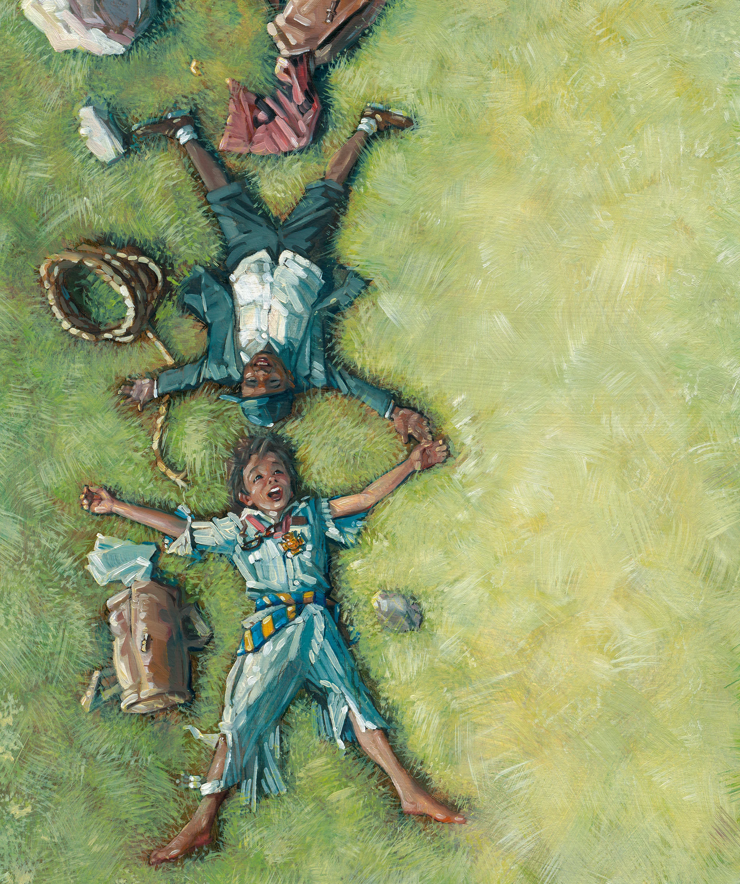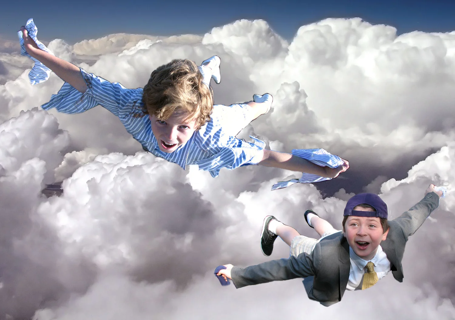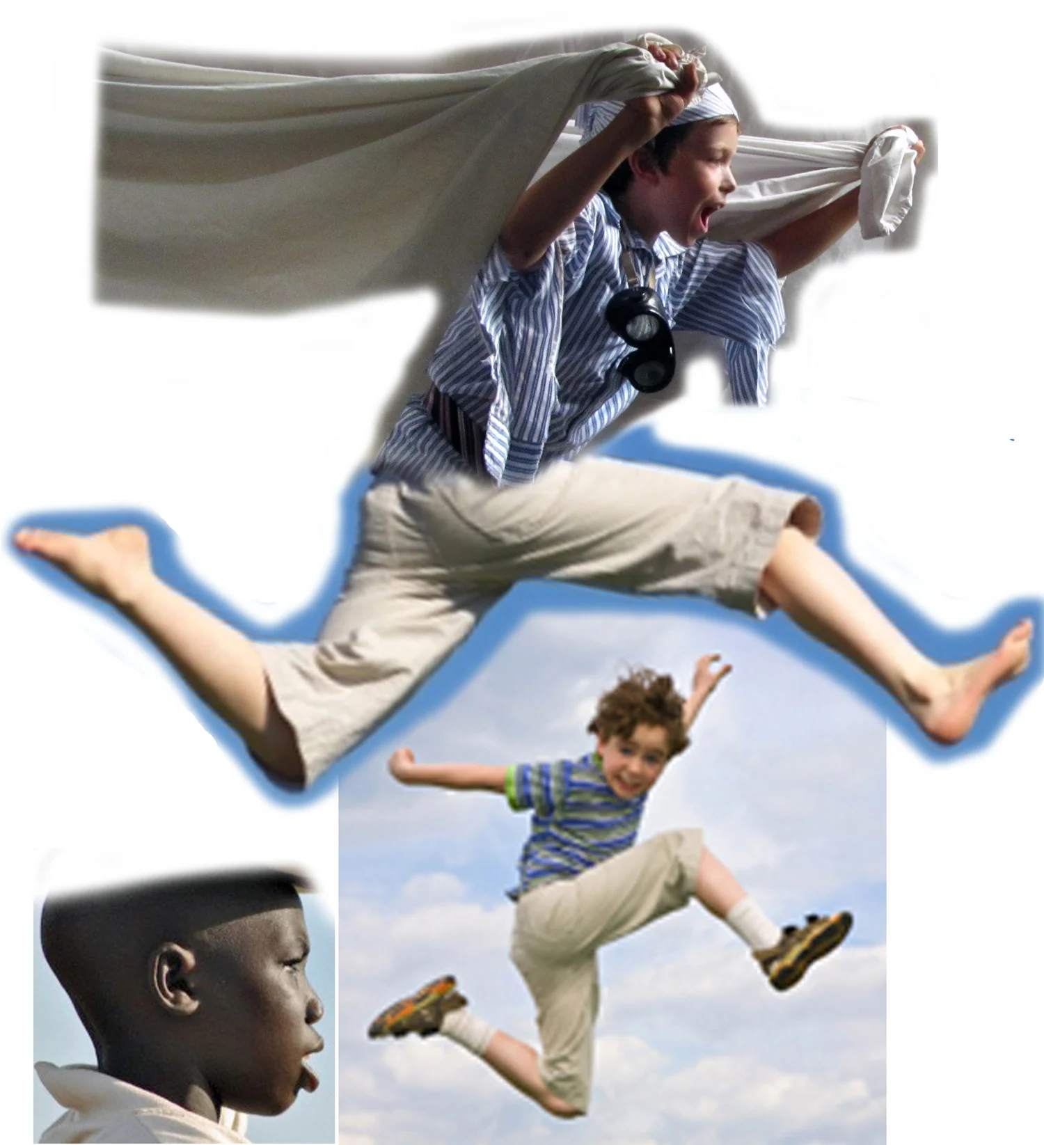 Reference photo compilation for Flying! I photographed the kids as they lay on their stomachs, on a table.