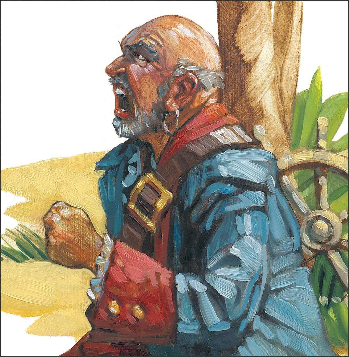 My usual art style didn't seem right for what felt like a classic adventure tale, so I hit the easel to adapt my oil painting technique. What you see is my attempt at a stylized realism inspired by the great American illustrators of the early twentieth century.