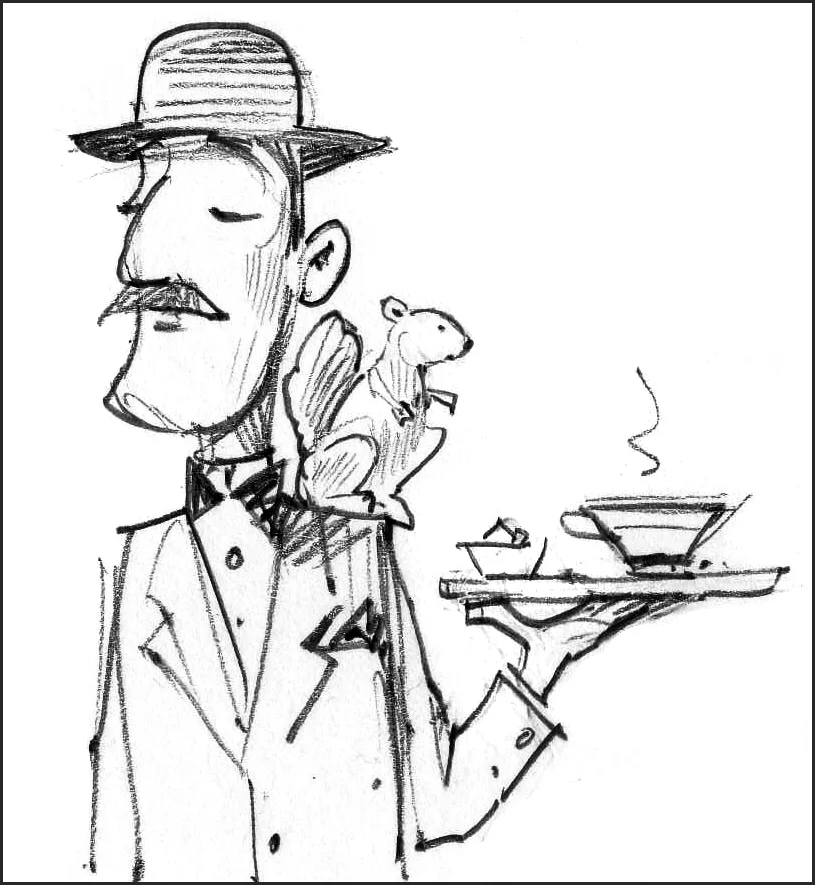 Sketch for the butler in Amelia Earhart. It's flying squirrel, of course, since the canyon was filled with lost aviators.