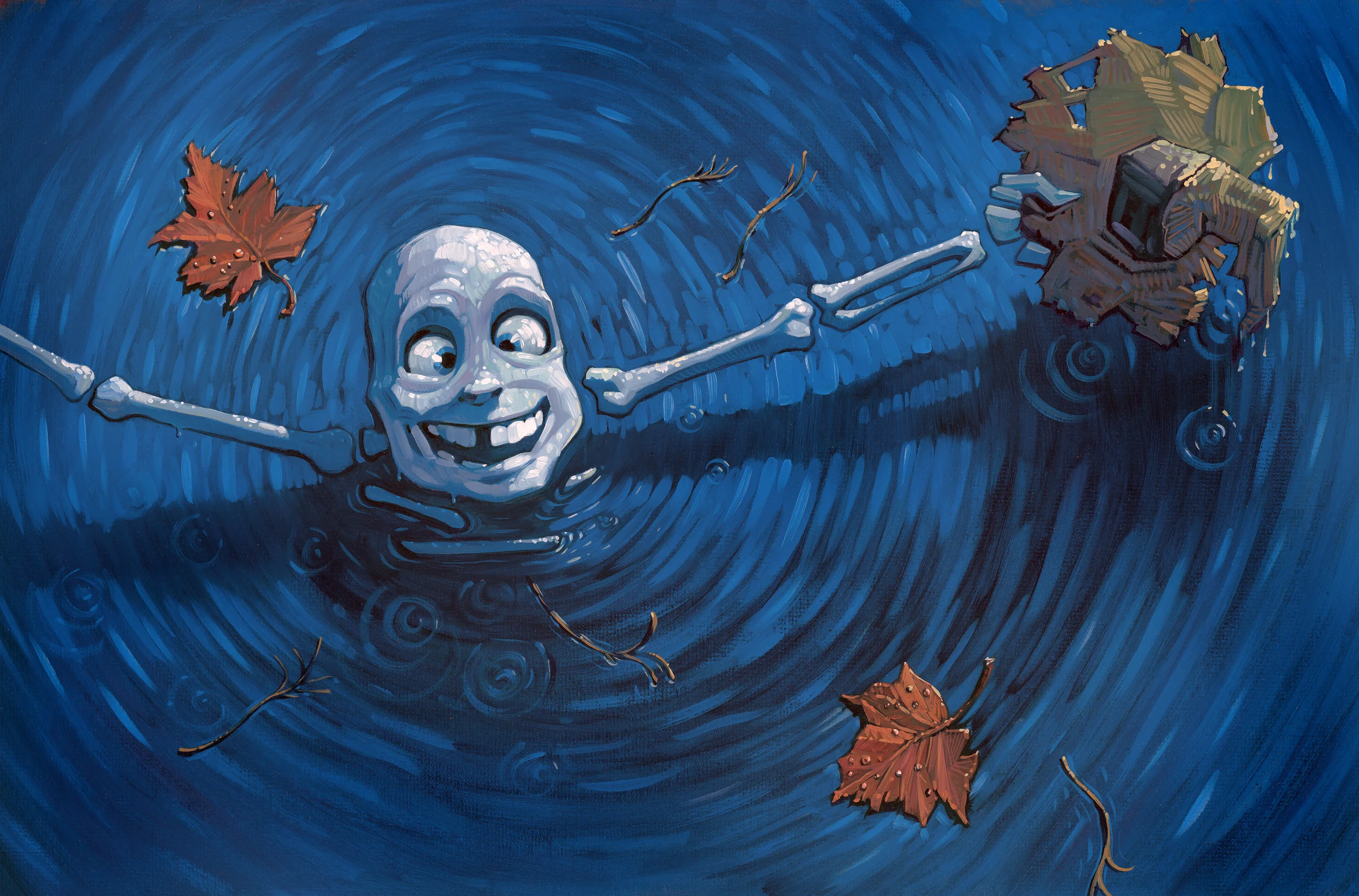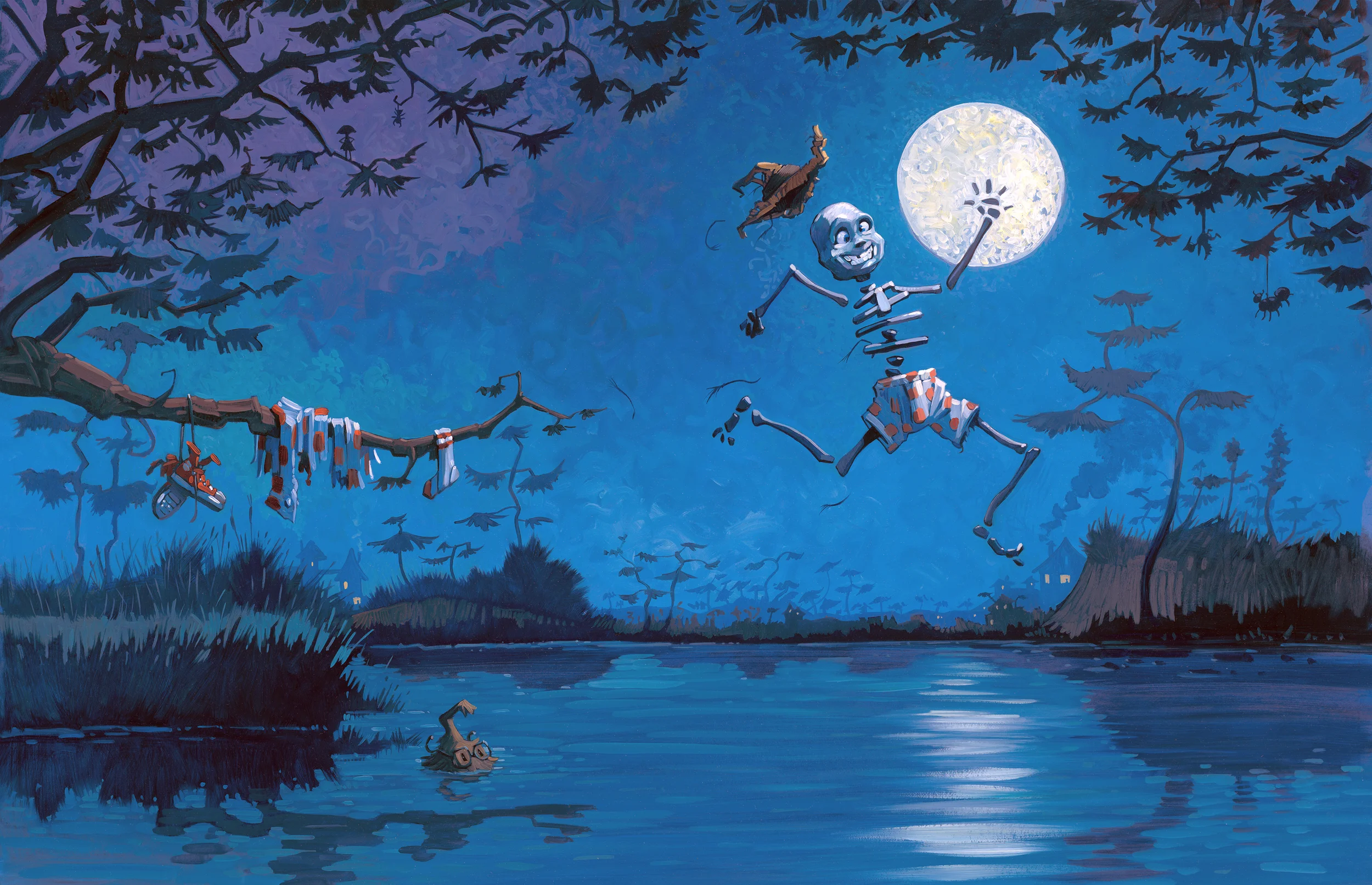 Skinny Dip • 25" wide. Oil on illustration board, 2014. $500. Buy this painting.