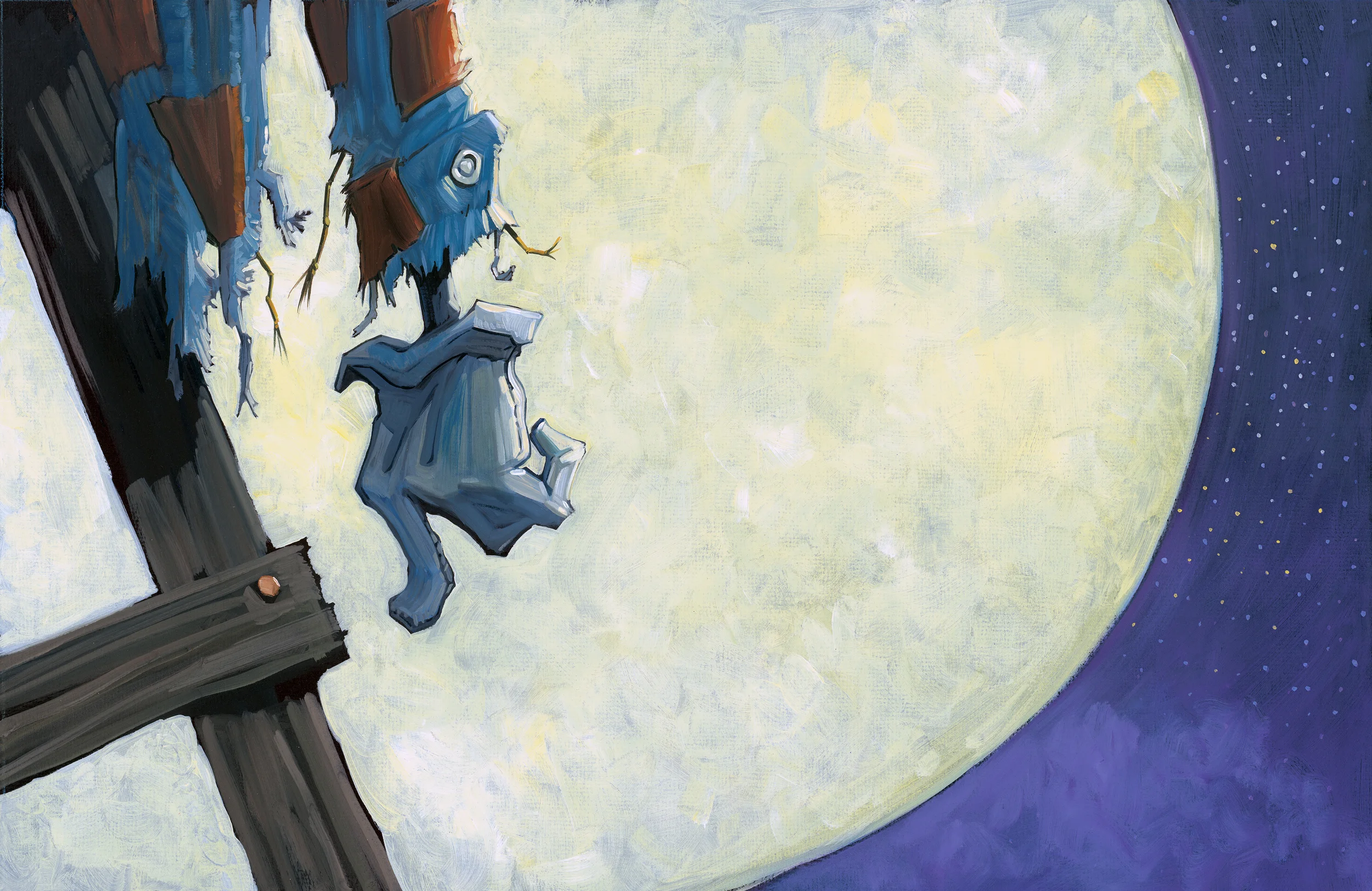 Twitching Finger • 25" wide. Oil on illustration board, 2014. $600. Buy this painting.