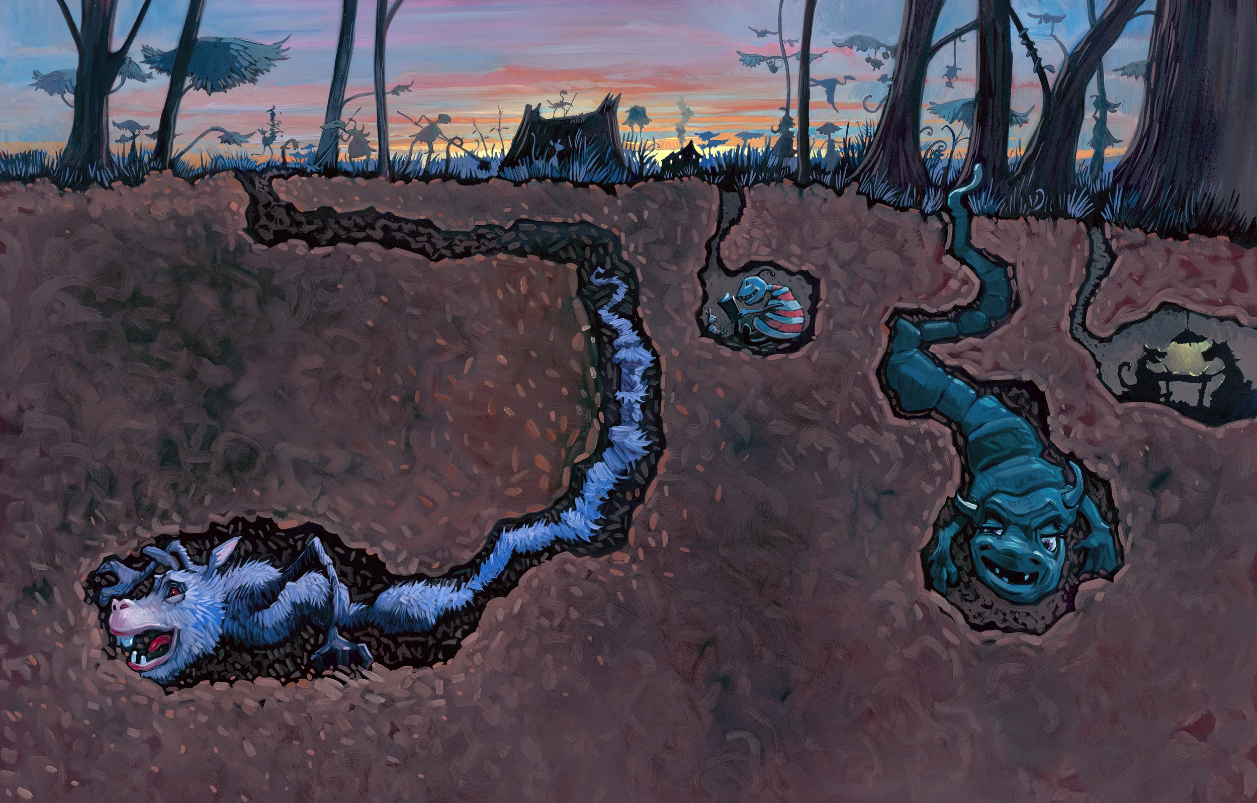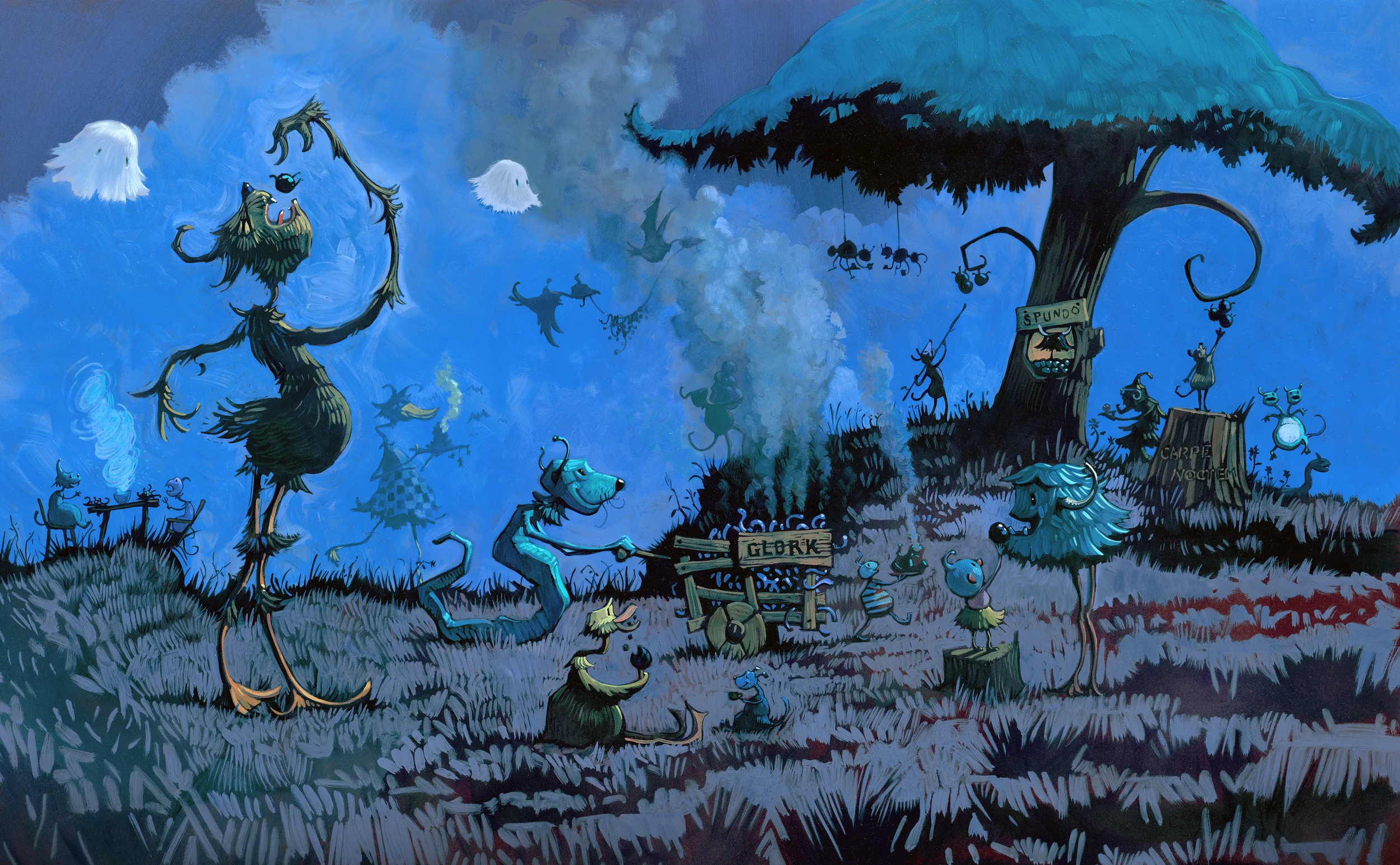 Beast Feast • 25" wide. Oil on illustration board, 2014. $800. Buy this painting.